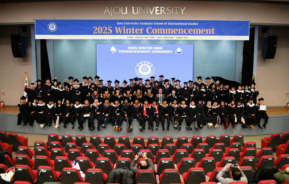 On February 13, the 2025 Winter Commencement Ceremony of Ajou University’s Graduate School of International Studies was held in the Yulgok Hall Auditorium, from which 70 graduates across four departments received their degrees.