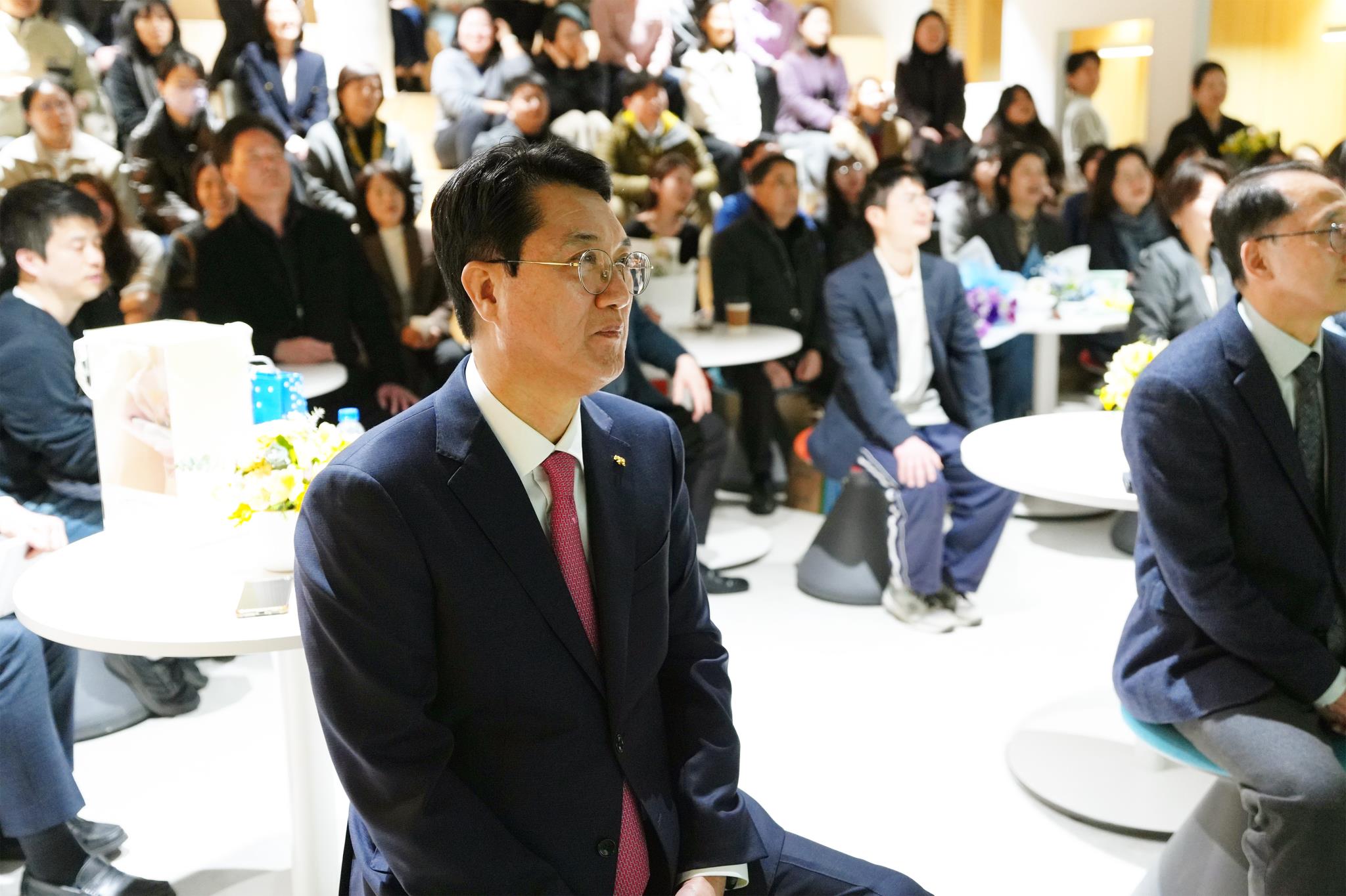 기념 영상을 함께 보는 박재홍 팀장과 참석자들
