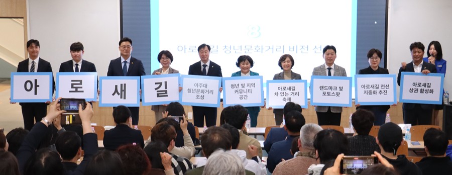 아주대학교와 학생, 상인 그리고 지역 주민들이 힘을 합쳐 학교 앞 거리인 '아로새길'을 활기 넘치는 곳으로 만글기 위한 '비전 선포식'이 지난 9일 개최했다.