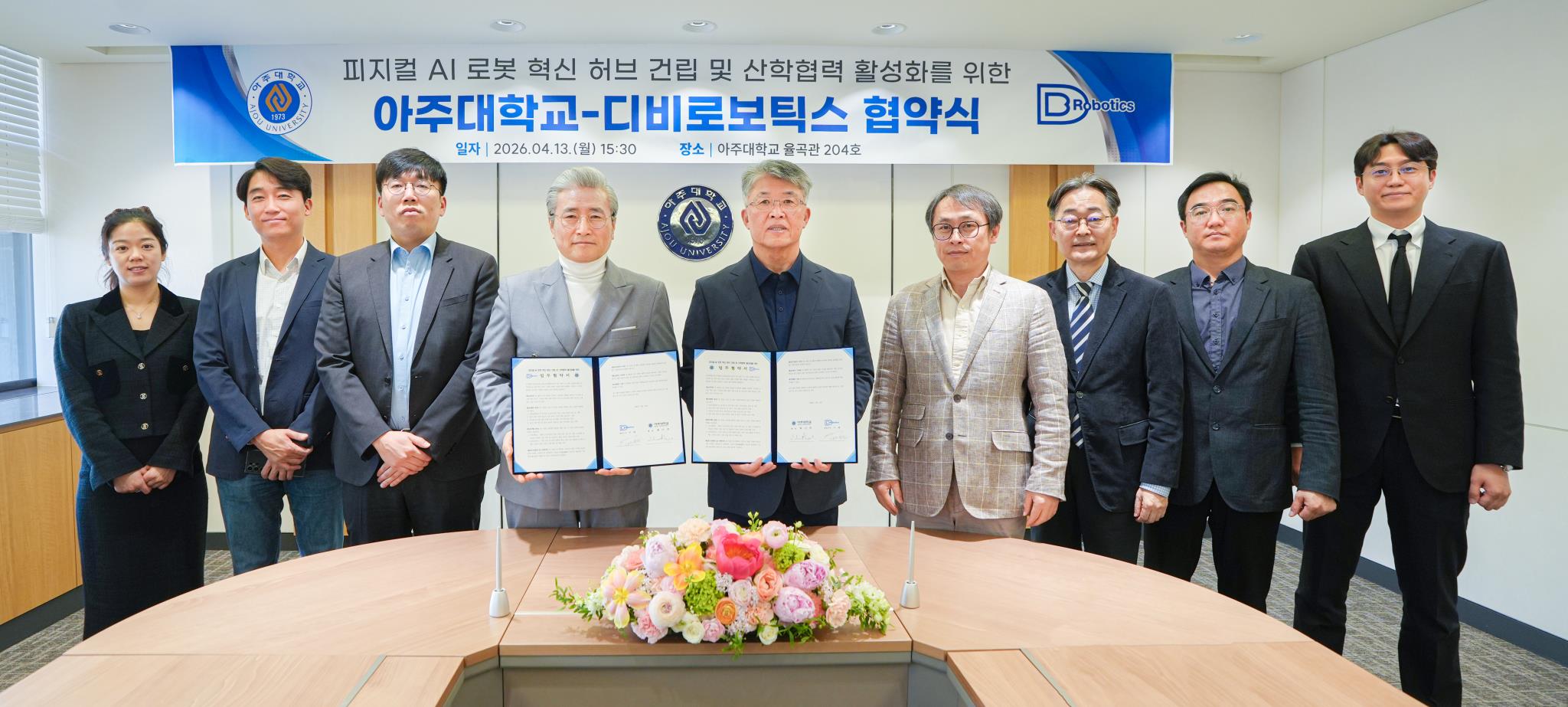 아주대학교가 디비로보틱스와 ‘피지컬 AI 로봇 혁신 허브 건립 및 산학협력 활성화를 위한 업무협약’을 체결했다. 이번 협약은 두 기관이 힘을 모아 로봇 산업의 새로운 거점을 마련하고 실질적인 산학협력 모델을 구축하기 위해 추진됐다.
