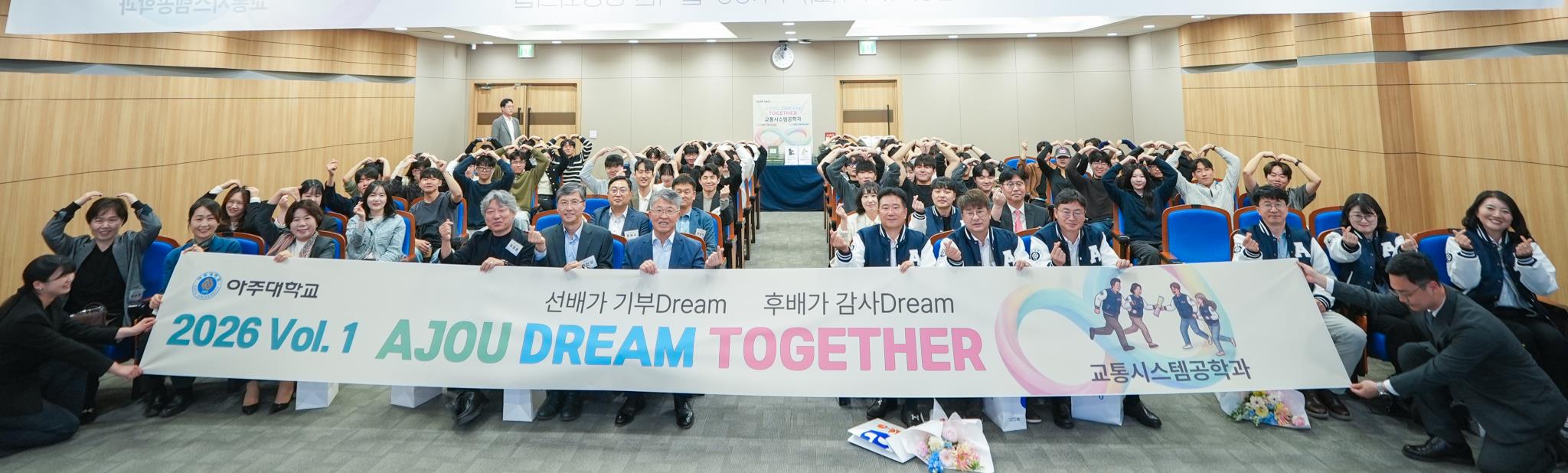 아주대학교 교통시스템공학과 출신 교통기술사 동문 모임의 기부를 계기로 ‘아주 드림 투게더(AJOU DREAM TOGETHER)’의 첫 번째 행사가 마련됐다.
